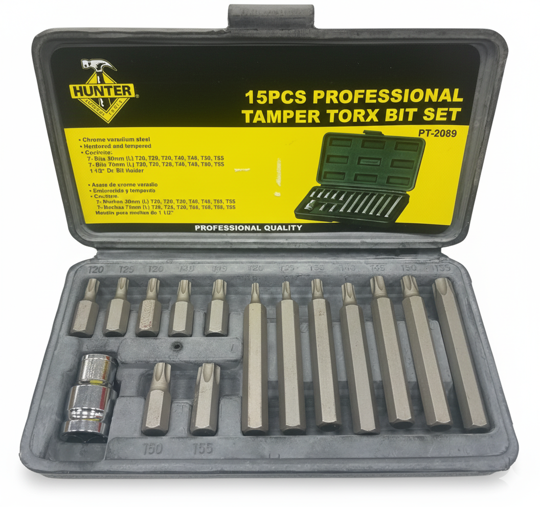 - Professional-grade tamper torque bit set.