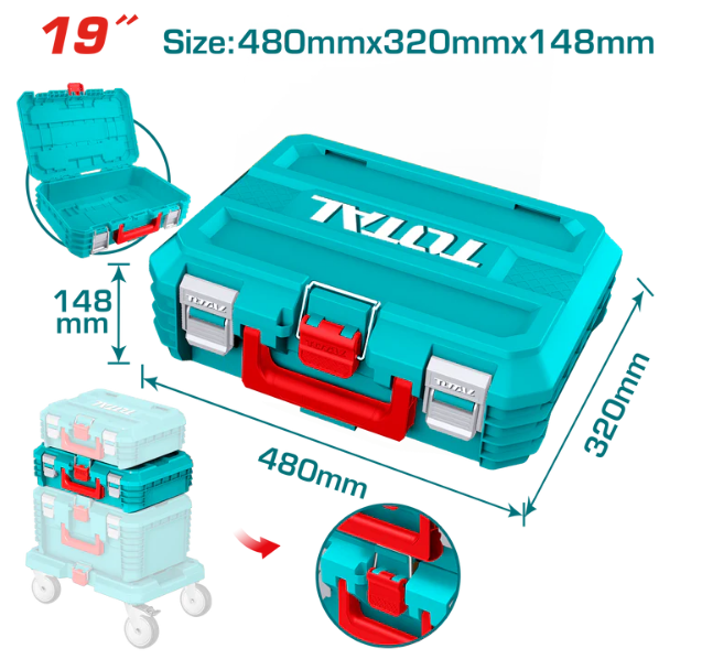 TOTAL 19″ STACKABLE TOOL BOX (19″ x 12.6″ x 5.8″)