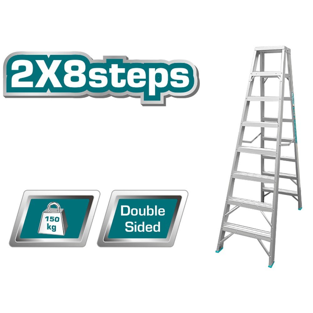 Total Aluminum Ladder , 2X8 Steps (Wide& Silver)