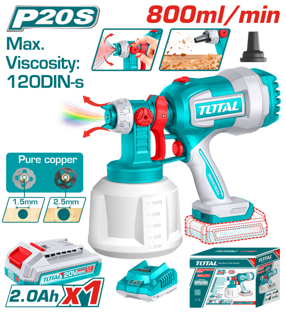 Total Cordless Spray Gun 20V 0.1-0.2Bar 800ml/min